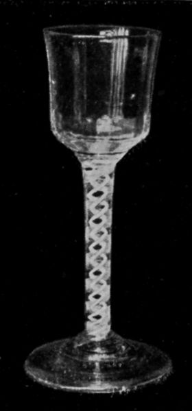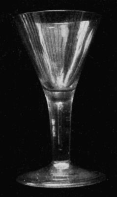 The sound of the past seems to throb in the ring of this frail and dainty ware; at your touch the cry of the bygone seems heard again. Because of fragility, enough of eighteenth-century glass has not lasted on to make it common, and yet so much of it is still extant that a collector’s hunt for it is by no means a hopeless quest. It may still be acquired at reasonable prices from dealers in antiques, and a hunter for it in odd corners, who buys in shillings, not in pounds, may reasonably hope to pick up many fine specimens for next to nothing even yet. Four years ago I bought a fine drawn cordial glass for 2d. Within the past three years I have myself bought a perfect captain glass for 3s. 6d.; within the last year I have bought six punch-lifters for 17s. 6d. in all, uncommon as these bibulous old siphons are. A large Bristol coloured-glass paper-weight may cost you £3 in a dealer’s shop, because[3] three years ago they began to be a “rage,” but within the past two years I have bought a Bristol glass article, equally beautiful in colour and glass-flowers, and much rarer, for 2s. Footless coaching glasses and thistle-shaped fuddling glasses are seldom seen, even on a dealer’s shelves, but I have found one of each, in odd corners, for 6d.
