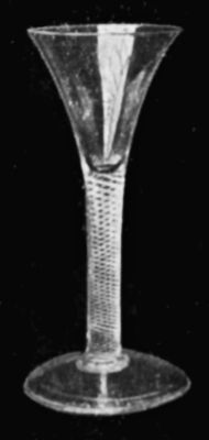 The beginner should recognize from the first that the range of the collector of old glass is not yet defined; that the practical hints and rules given in this book may be applied to any piece of glass, and should be, no matter how unusual its form or inexplicable now its use in its time. During the next few years things which now seem oddities, because they are so unusual, may become particularly sought after, and valued because they are rare. I therefore advise the beginner to be a general and diffusing collector, leaving no genuine old piece unsnapped-up which comes within his reach and means. At present cut Waterford glass and spiral-stemmed blown wine glasses are the things most sought after by glass collectors, but they may not be so a few years[12] hence. I do not mean that they will ever drop in selling value now, but I anticipate that the selling value of other glass articles, rather neglected now, may appreciate; that is why I recommend the practice of general and diffusive collecting and a wide range. But if a collector prefers to specialize, he may set out to collect wine glasses only, or inscribed glasses only, or what-not in that way; he may go in for cut-glass only, or blown glass only, or coloured glass only, or toys and eccentricities only; he may choose geographically, collecting Irish glass only, or English glass only, or Bristol glass only, and so forth. In any case his range will be limited by certain dates; he will very seldom come upon a piece so old as the reign of Charles II, and he will not care to collect glassware made so late as the year in which Victoria came to the throne. With Venice-made glass this book has nothing to do. Much old Dutch-made glass exists in England, but the student of this book will be enabled to detect it, and not unintentionally to acquire it believing it to be English[13] made. Bohemian-made glass, cut and coloured, is seldom taken up by collectors here. The range in these islands is for English and Irish glass, for it is the ware most readily collectable, most likely to increase in value, and to be most readily sold when a collection comes to be dispersed; I mention this latter consideration because any collector not wealthy must, in justice to his heirs and dependents, in this matter[14] “look to the end.”