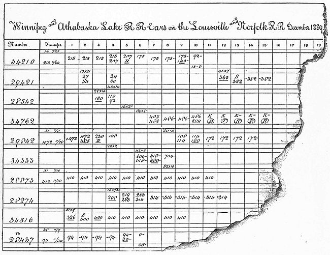 | Sixteen Months' Journey of a Car—Detentions by the Way—Difficulties of the Car Accountant's Office—Necessities of Through Freight—How a Company's Cars are Scattered—The Question [x] of Mileage—Reduction of the Balance in Favor of Other Roads—Relation of the Car Accountant's Work to the Transportation Department—Computation of Mileage—The Record Branch—How Reports are Gathered and Compiled—Exchange of "Junction Cards"—The Use of "Tracers"—Distribution of Empty Cars—Control of the Movement of Freight—How Trains are Made Up—Duties of the Yardmaster—The Handling of Through Trains—Organization of Fast Lines—Transfer Freight Houses—Special Cars for Specific Service—Disasters to Freight Trains—How the Companies Suffer—Inequalities in Payment for Car Service—The Per Diem Plan—A Uniform Charge for Car Rental—What Reforms might be Accomplished. | |