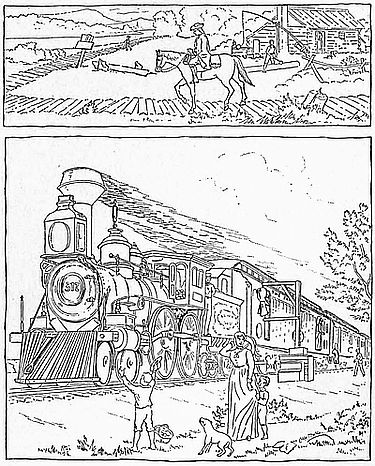 | The Earliest Railway Passenger Advertisement—The First Time-table Published in America—The Mohawk & Hudson Train—Survival of Stage-coach Terms in English Railway Nomenclature—Simon Cameron's Rash Prediction—Discomforts of Early Cars—Introduction of Air-brakes, Patent Buffers and Couplers, the Bell-cord, and Interlocking Switches—The First Sleeping-cars—Mr. Pullman's Experiments—The "Pioneer"—Introduction of Parlor and Drawing-room Cars—The Demand for Dining-cars—Ingenious Devices for Heating Cars—Origin of Vestibule-cars—An Important Safety Appliance—The Luxuries of a Limited Express—Fast Time in America and England—Sleeping-cars for Immigrants—The Village of Pullman—The Largest Car-works in the World—Baggage-checks and Coupon Tickets—Conveniences in a Modern Depot—Statistics in Regard to Accidents—Proportion of Passengers in Various Classes—Comparison of Rates in the Leading Countries of the World. | |