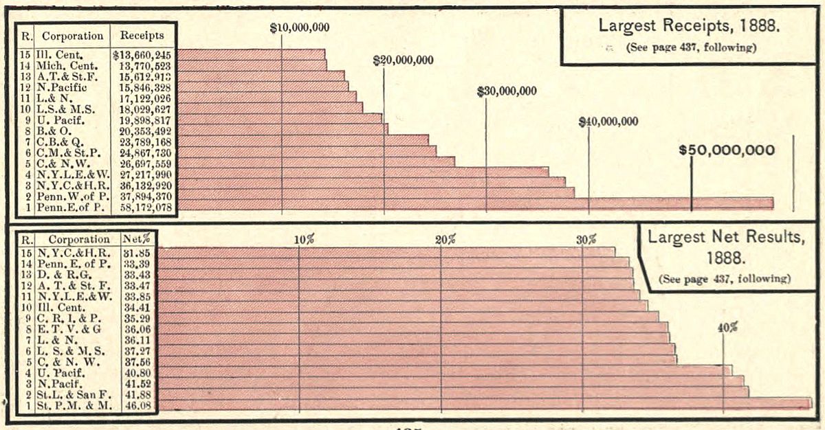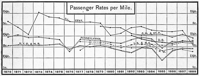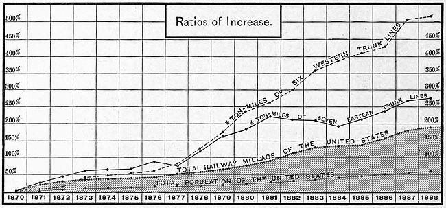 | Railway Mileage of the World—Railway Mileage of the United States—Annual Mileage and Increase—Mileage Compared with Area—Geographical Location of Railways—Centres of Mileage and of Population—Railway Systems—Trunk Lines Compared: By Mileage; Largest Receipts; Largest Net Results—Freight Traffic—Reduction of Freight Rates—Wheat Rates—The Freight Haul—Empty Freight Trains—Freight Profits—Passenger Traffic—Passenger Rates—Passenger Travel—Passenger Profits—General Considerations—Dividends—Net Earnings per Mile and Railway Building—Ratios of Increase—Construction and Maintenance—Employees and their Wages—Rolling Stock—Capital Invested. | |