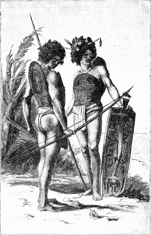 Als ein weiterer Beitrag und zur Ergänzung des erzählenden Teiles ist ein ethnologischer Atlas beigegeben, welcher uns »Typen der Steinzeit« vorführt, jener hochinteressanten Periode, die auch in Neu-Guinea unaufhaltsam ihrem Ende entgegengeht. Denn überall, wo sich der Weiße dauernd festigt, verschwindet die Originalität der[S. 10] Eingeborenen. Durch eigene Erfahrung von dieser Thatsache überzeugt, bemühte ich mich, überall wo es anging, Belegstücke für die Wissenschaft zu sichern. Die »Samoafahrten« sind daher auch für die Völkerkunde ersprießlich geworden und führten u. A. dem Kön. Museum in Berlin[4] über 2000 Stücke zu. Die ausgewählten Typen des Atlas veranschaulichen Erzeugnisse, die für die Intelligenz, den Kunstfleiß und den Schönheitssinn der Papuas beredtes Zeugnis ablegen, und, in Anbetracht der geringen Hilfsmittel der Steinperiode, ganz besonderes Interesse, nicht selten Bewunderung verdienen.