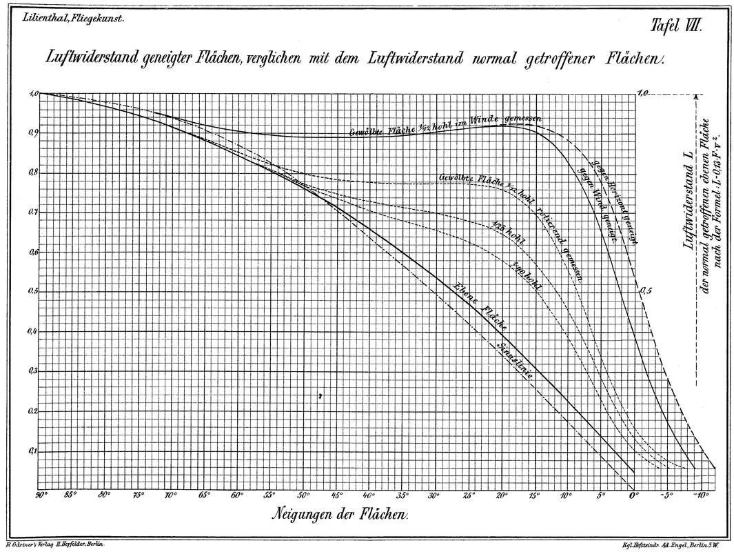 Um nun einen Beitrag zu liefern, die Eigentümlichkeiten der Luftwiderstandserscheinungen näher kennen zu lernen, und dadurch zur weiteren Forschung in der Ergründung der für die Flugtechnik wichtigsten Fundamentalsätze anzuregen, veröffentliche ich hiermit eine Reihe von Versuchen und an diese geknüpfter Betrachtungen, welche von mir gemeinschaftlich mit meinem Bruder Gustav Lilienthal angestellt wurden.