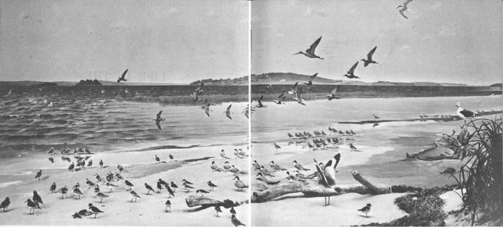 Dozens of Common Terns are to be found nesting at the southern tip of the Neck. Long ago, the Common Tern began laying its eggs on the bare sand, and made no nest at all. Each egg is sand-colored, with speckles resembling pebbles. Only a patient search will locate a Tern nest on the Beach, and then, unless you are cautious, the discovery may come after you have accidentally stepped on the eggs.