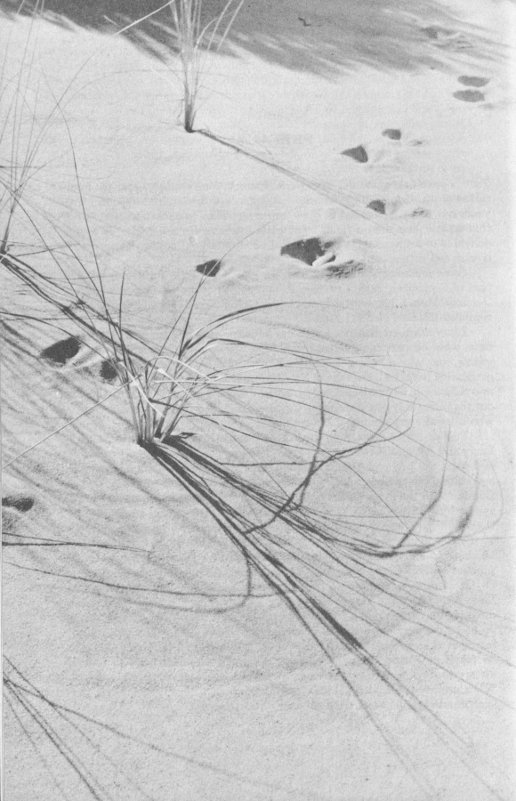 Exploring the dunes and making the acquaintance of the inhabitants, you can see this environmental community meshing its lives together, and you can observe the fine degree of adaptation developed by each life form. You may find an occasional Apple tree growing out of the sand, rooted in a more fertile soil below, a reminder of the time when that bit of the Neck was a rich farmland. The roots of the Beach Plum also reach down to the water table, and it is thus able to grow out of the sand, although its seedlings cannot take root in the sand. Most of all, you will have an opportunity to note many special animal and plant peculiarities the dune dwellers have developed to suit their particular environment.