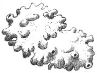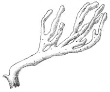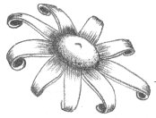 Since mushrooms generally require plenty of water, you would not expect to find them at the beach. Several species, however, may be discovered here. The most readily identifiable is the Earth Star (Geaster hygrometricus), which resembles a Puff Ball but differs in having the outer layer of the skin divided into tough, star-shaped segments. During the dry seasons, this star is drawn up around the ball by its contraction, thus protecting it against further desiccation. In wet weather, the ball swells and holds the star against the ground to allow for water absorption. The “roots” of the Earth Star are shallow, so the plant may readily be dislodged. The wind easily blows it across the dunes, spreading the spores over a wide area.