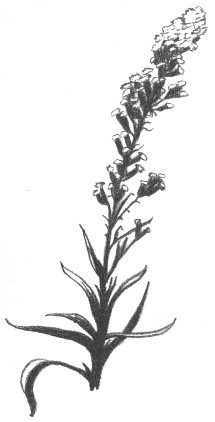This very attractive flower is seldom found at any distance from water’s edge. Usually it grows in the moist sand of fresh-water pools, just above water level. On close examination you will find the leaves quite hairy, almost downy. The flowers are mounted at the tips of long stalks. They appear early in the spring, about May, and blooming is over by June.