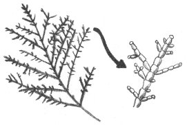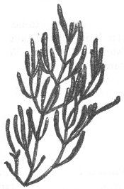 Glasswort, a plant of the salt marsh, requires quantities of salt water. It is easily identified by its leafless stem, which looks like a string of sausages. In autumn these succulent stems turn a bright red, adding an attractive flash of color to the dying plants around them. Glasswort stems take in great quantities of salt, which you will taste if you chew one.