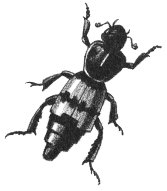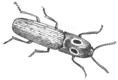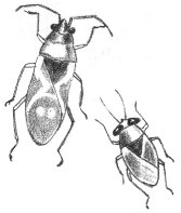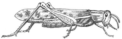 The sand offers few places of retreat and few for hiding. It is not surprising, then, that many of the living things here have a sand-colored protective coloration. There is a large Grasshopper, or Locust, commonly found on the Beach. Its dull, gray, speckled wing-covers make it practically invisible when at rest. But the underwings, used for flight, are a striking orange with black bands. When discovered, the Locust flies up, confusing its attacker with this bright flash of color and a loud whirring noise. Unlike most insects, this Locust eats the thick-skinned, dry Beach Grass.