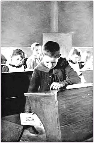 The meeting-house which our boy remembers was a high, square building, without a steeple. Within, it had a lofty pulpit, with doors underneath and closets where sacred things were kept, and where the tithing-men were supposed to imprison bad boys. The pews were square, with seats facing each other, those on one side low for the children, and all with hinges, so that they could be raised when the congregation stood up for prayers and leaned over the backs of the pews, as horses meet each other across a pasture fence. After prayers these seats used to be slammed down with a long-continued clatter, which seemed to the boys about the best part of the exercises. The galleries were very high, and the singers' seats, where the pretty girls sat, were the most conspicuous of all. To sit in the gallery, away from the family, was a privilege not often granted to the boy. The tithing-man, who carried a long rod and kept order in the house, and outdoors at noontime, sat in the gallery, and visited any boy who whispered or found curious passages in the Bible and showed them [Pg 36] to another boy. It was an awful moment when the bushy-headed tithing-man approached a boy in sermon-time. The eyes of the whole congregation were on him, and he could feel the guilt ooze out of his burning face.