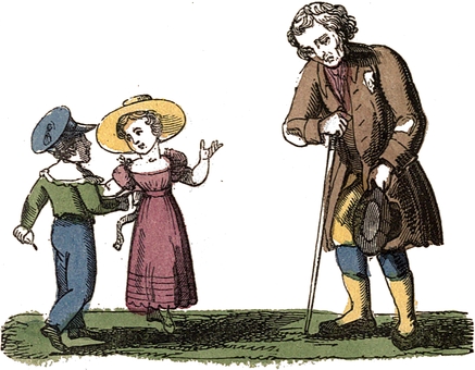 "How sad that poor old man looks!" said Mary to John: "his clothes are all in rags. I wish we had something to give him." "So do I," said John; "but my sixpence went to buy a top. Let us ask for a piece of bread for him."
