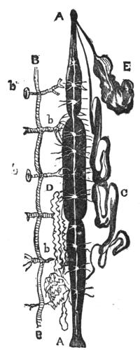 As each wound is made, the caterpillar seems to wince, but shows no farther sense of uneasiness, and proceeds with its eating as usual. But its food serves very little for its own nourishment, because the ichneumon’s eggs are speedily hatched into ichneumon grubs, and consume the fatty portions of the caterpillar as fast as it is formed.