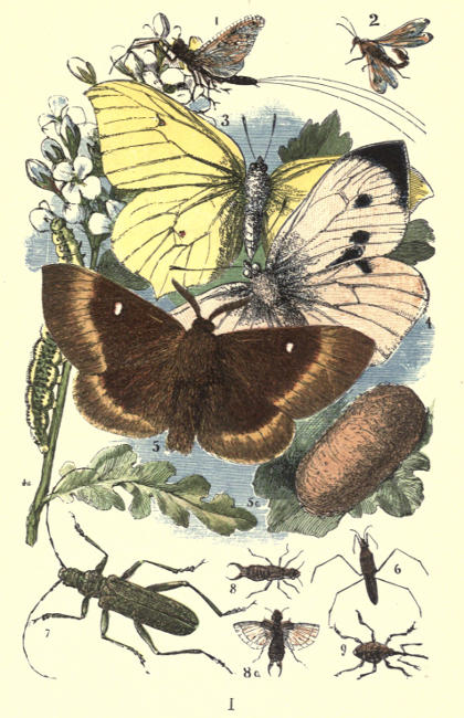 Plate I, fig. 3, shows the Brimstone Butterfly, one of the first to appear as the herald of spring.