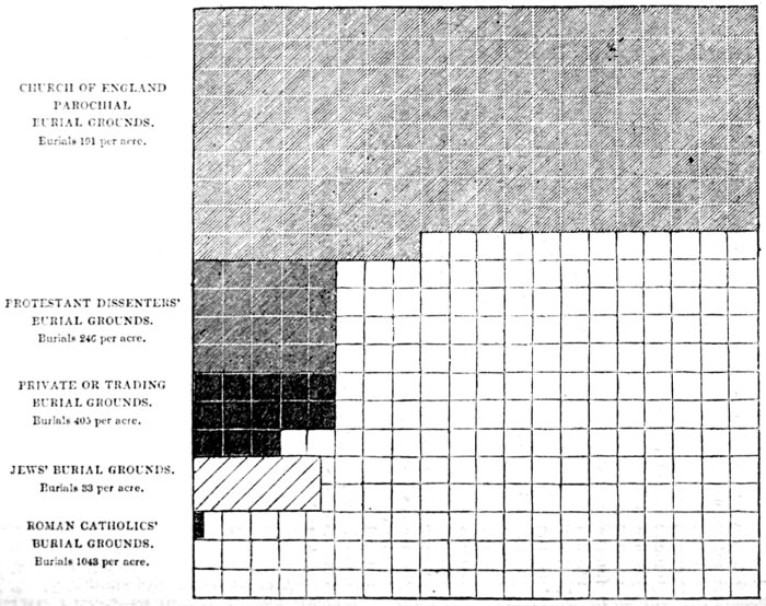 | Summary of the extent of the burials by the chief religious communities, § 155—Disclaimer of private burial-grounds, § 156—Extent of cemetery companies’ estimates for burials, §§ 157 and 158—Diminution of public demand for burials in lead and in catacombs, § 160—Dangers to the living of ill-regulated burials, and legislation on, § 162—Improvements in all existing material arrangements for burials practicable. § 164—Defective arrangements in private cemeteries, §§ 165 and 166—Examples of improved ceremonial arrangements, §§ 169 and 171 | 133 |