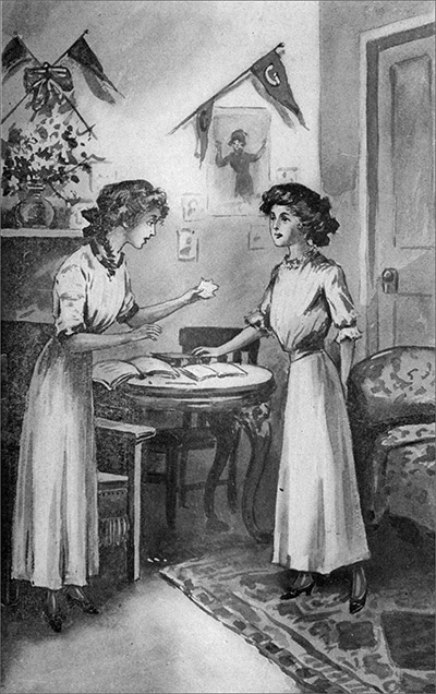 “And a Dutch neck on the train,” continued Tavia, looking at the very white neck of the new girl, who wore no collar. “I believe she wears slippers, and the very thinnest silk hose.”