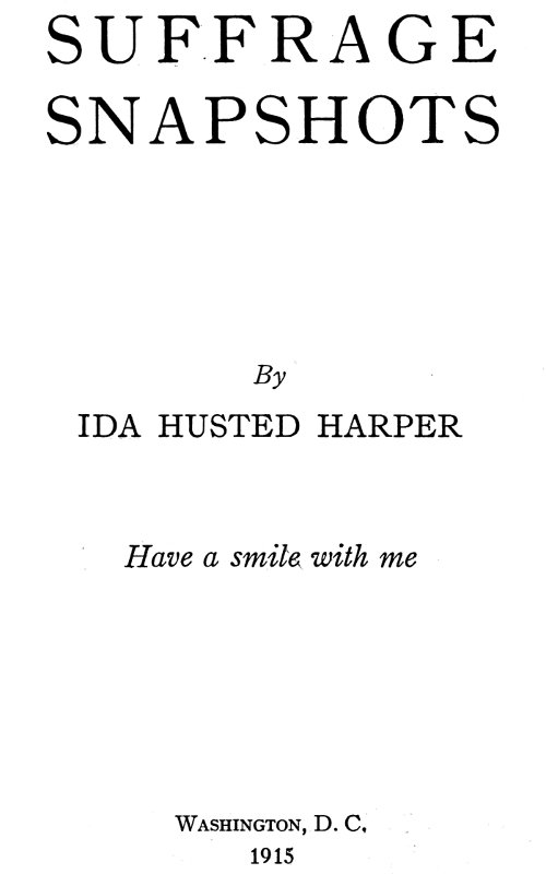 The Project Gutenberg EBook of Suffrage snapshots, by Ida Husted Harper This eBook is for the use of anyone anywhere at no cost and with almost no restrictions whatsoever. You may copy it, give it away or re-use it under the terms of the Project Gutenberg License included with this eBook or online at www.gutenberg.org/license Title: Suffrage snapshots Author: Ida Husted Harper Release Date: May 2, 2017 [EBook #54650] Language: English Character set encoding: UTF-8 *** START OF THIS PROJECT GUTENBERG EBOOK SUFFRAGE SNAPSHOTS *** Produced by Richard Tonsing and the Online Distributed Proofreading Team at http://www.pgdp.net (This file was produced from images generously made available by The Internet Archive)