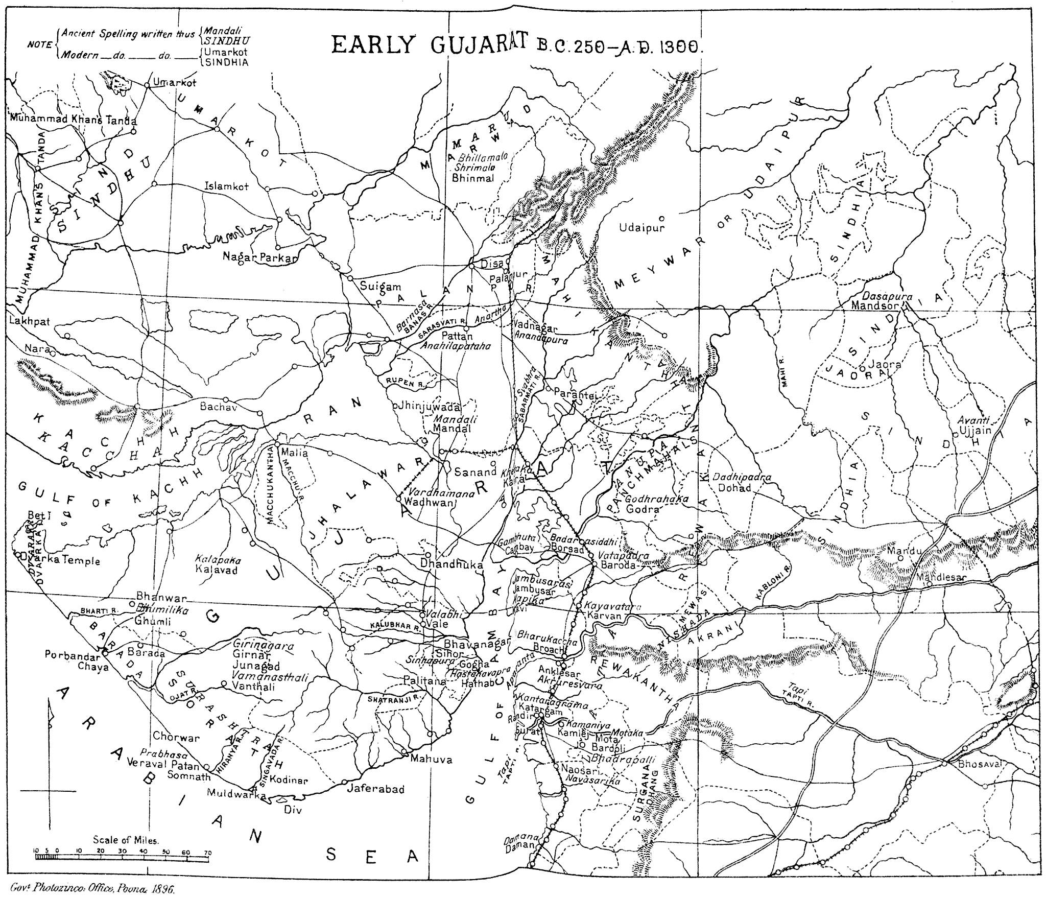 The general contributions on History contained in Vol. I. Parts I. and II. are among the most valuable portions of the Gazetteer. Besides the shorter papers by Mr. L. R. Ashburner, C.S.I., on the Gujarát Mutinies of 1857, by Mr. J. A. Baines, C.S.I., on the Maráthás in Gujarát, by Mr. W. W. Loch, I.C.S., on the Musalmán and Marátha histories of Khándesh and the Bombay Dakhan, and by the late Colonel E. W. West, I.S.C., on the modern history of the Southern Marátha districts, there are the Reverend A. K. Nairne’s History of the Konkan which is specially rich in the Portuguese period (a.d. 1500–1750), the late Colonel J. W. Watson’s Musalmáns of Gujarát with additions by Khán Sáheb Fazl Lutfullah Farídi of Surat, and the important original histories of the Early Dakhan by Professor Rámkrishna Gopál Bhandárkar, C.I.E., Ph.D., and of the Southern Marátha districts by Mr. J. F. Fleet, I.C.S., C.I.E., Ph.D. With these the early history of Gujarát from materials supplied by the late Pandit Bhagvánlál Indraji, Ph.D., is perhaps not unworthy to rank. The work of completing Dr. Bhagvánlál’s history was one of special difficulty. No satisfactory result would have been obtained had it not been for the valuable assistance received from Mr. A. M. T. Jackson, M.A., of the Indian Civil Service.
