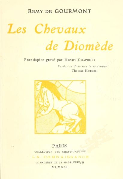 The Project Gutenberg EBook of Les chevaux de Diomède, by Remy de Gourmont This eBook is for the use of anyone anywhere in the United States and most other parts of the world at no cost and with almost no restrictions whatsoever. You may copy it, give it away or re-use it under the terms of the Project Gutenberg License included with this eBook or online at www.gutenberg.org. If you are not located in the United States, you'll have to check the laws of the country where you are located before using this ebook. Title: Les chevaux de Diomède Author: Remy de Gourmont Release Date: May 4, 2017 [EBook #54659] Language: French Character set encoding: UTF-8 *** START OF THIS PROJECT GUTENBERG EBOOK LES CHEVAUX DE DIOMÈDE *** Produced by Marc D'Hooghe at Free Literature (online soon in an extended version, also linking to free sources for education worldwide ... MOOC's, educational materials,...) Images generously made available by the Internet Archive.