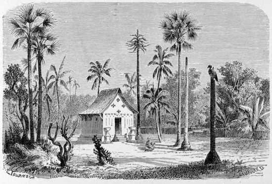 Their Laotian friend informed our travellers that they were witnessing nothing less than a funeral ceremony! In Laos, cremation is the universal custom; and the mortuary rites of a Laotian of rank generally terminate with a gladiatorial combat, at the conclusion and on the very site of the process of cremation.