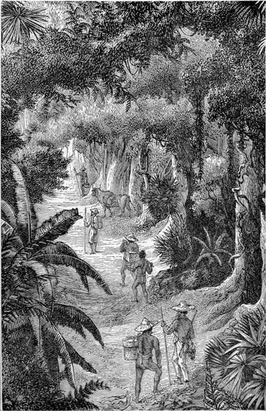 One evening, seated at the foot of a tamarisk-tree, the fruit of which a troop of squirrels was busily crunching among the branches overhead, Garnier and his comrade, Dr. Thorel, took counsel together; with the conclusion that, on the day following, they would undertake a mountain excursion, and boldly attempt to scale one of the most elevated peaks. Accordingly, at dawn they started, attended by their usual escort—a native, christened Luiz.