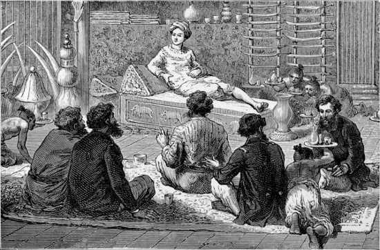 Unhappily, slavery prevails, as it does in Siam and Cambodia. A debtor may be enslaved, by judicial confiscation; but the “peculiar institution” is chiefly recruited from the wild tribes in the eastern provinces. The slaves are employed in tilling the fields, and in domestic labours; they are treated with great kindness. They often live so intimately and so familiarly with their masters, that, but for their long hair and characteristic physiognomy, it would be difficult to distinguish them in the midst of a Laotian “interior.”