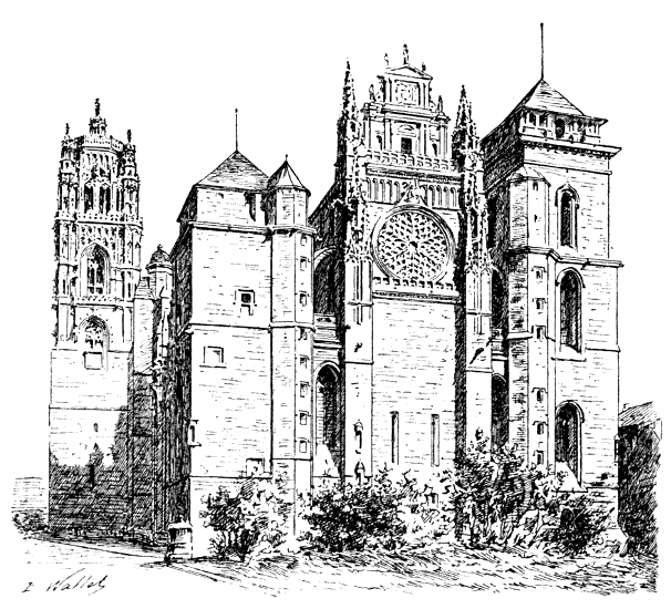 The archbishop's palace at Albi has all the character of a feudal castle. Its buildings are protected by a keep, and encircled by walls and towers[386] connected both with the ramparts of the city, and with that more important fortalice, the cathedral itself, the tower of which is, in fact, a formidable keep.[76]