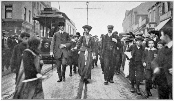 For the next few years, my mother took no active part in politics, except as a member of the Manchester School Board,[1] but in 1901 my sister Christabel became greatly interested in the Suffrage propaganda organised by Miss Esther Roper, Miss Eva Gore-Booth, and Mrs. Sarah Dickinson amongst the women textile workers. She was also elected to the Manchester Women's Suffrage Committee, of which Miss Roper was Secretary. Christabel soon struck out a new line for herself. Impressed by the growing strength of the Labour Movement she began to see the necessity of converting to the question of Women's Suffrage the various Trade Union organisations, which were upon the eve of becoming a concrete force in politics. She therefore made it her business to address as many of the Trade Unions as were willing to receive her.