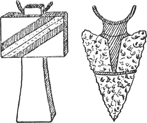 THE ARROW-HEAD.—The early Britons spent a great deal of their time in taking suitable flints and shaping them into the form of triangles. These were called arrow-heads, and when the two side edges had been sharpened they were fixed into sticks and used as weapons or tools. Out of this use grew the idea that arrow-heads were potent charms in providing bodily protection against enemy force or the usual illnesses. Accordingly, people began to wear them as neck ornaments and, for this purpose, decorative arrow-heads were made. Ever since then, they have been cherished for their powers in warding off attacks, and a superstition still exists which claims that if one of these arrow-heads is dipped in water, the water will be more potent than any doctor's medicine.