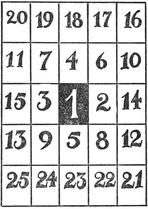 It will be seen that the word "Abracadabra" can be read along the upper line and also down and up the two sides. This word is said to conceal the name of God and the charm has the powers of warding off dangers and sickness.