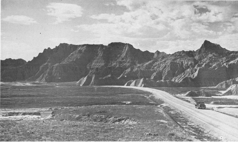 Any visit to the Black Hills must also be the occasion of a tour, at least for a few hours, of the famous South Dakota Badlands. This fantastic National Monument is not a part of the Hills, either geographically or historically, but because the two regions lie so close together—a scant fifty miles apart—they are expediently linked as two great natural wonders in the same region.