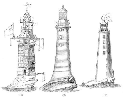 Light-houses of (1) Winstanley, (2) Smeaton, and (3) Rudyerd.
