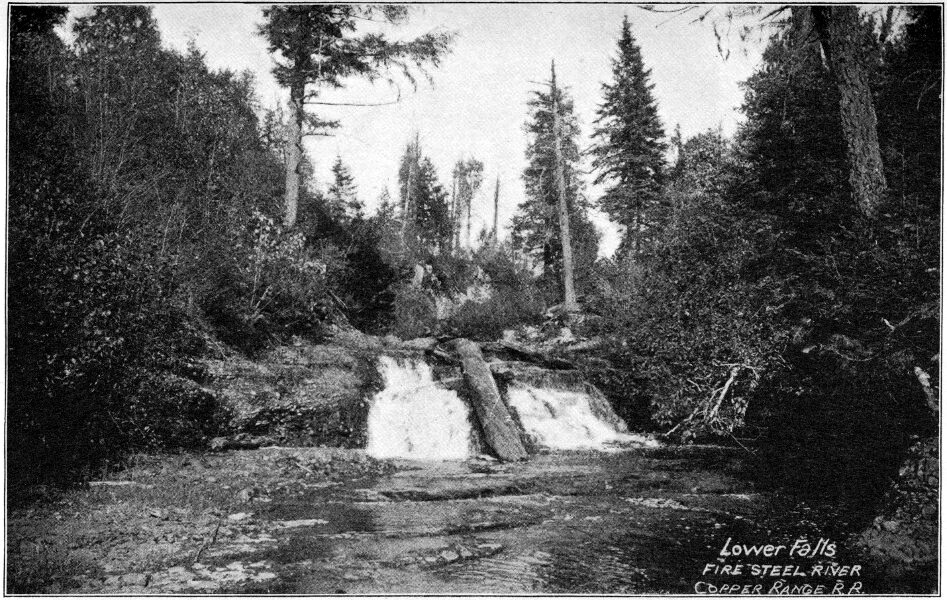 Pictures are given which show the natural beauty of the Copper Country. Pleasing views are so bountifully bestowed by nature that it is a difficult task to choose the most impressive. But enough are given to create a taste for more—a taste that can be gratified to its fullest only by rambling among the vales and hills, through the forests and along the banks of the quiet streams and the shores of the mighty Unsalted Sea.