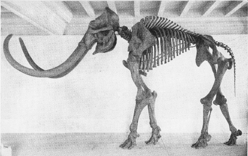 The Columbian Mammoth, about eleven feet tall, lived in the early half of the Pleistocene period, ranging over the warmer portions of North America, including practically all of the United States and much of Mexico;