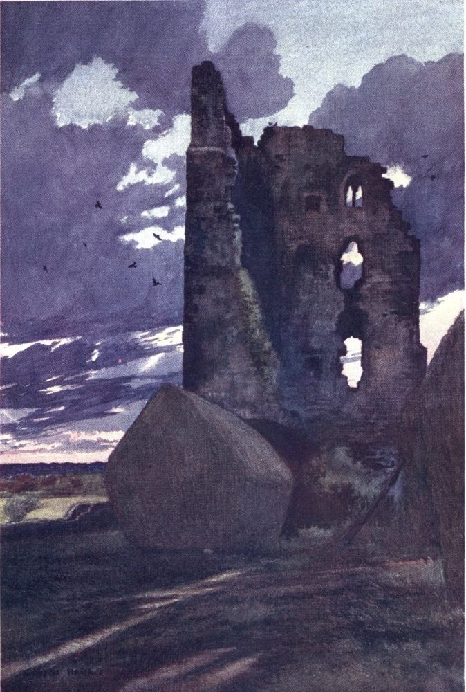The castle, or fortified house of the Constables, is reduced to the insignificant ‘Danish Tower’ we have seen. It stands in a meadow, and sheep crop the grass which covers but does not hide the outline of the foundations. Yorkshire being a county rich in superstitions, it is not surprising to find that a fisherman will turn back from going to his boat, if he happens on his way to meet a parson, a woman, or a hare, as any one of these brings bad luck. It is also extremely unwise to mention to a man who is baiting lines a hare, a rabbit, a fox, a pig, or an egg. This sounds foolish, but a fisherman will abandon his work till the next day if these animals are mentioned in his presence.[B]