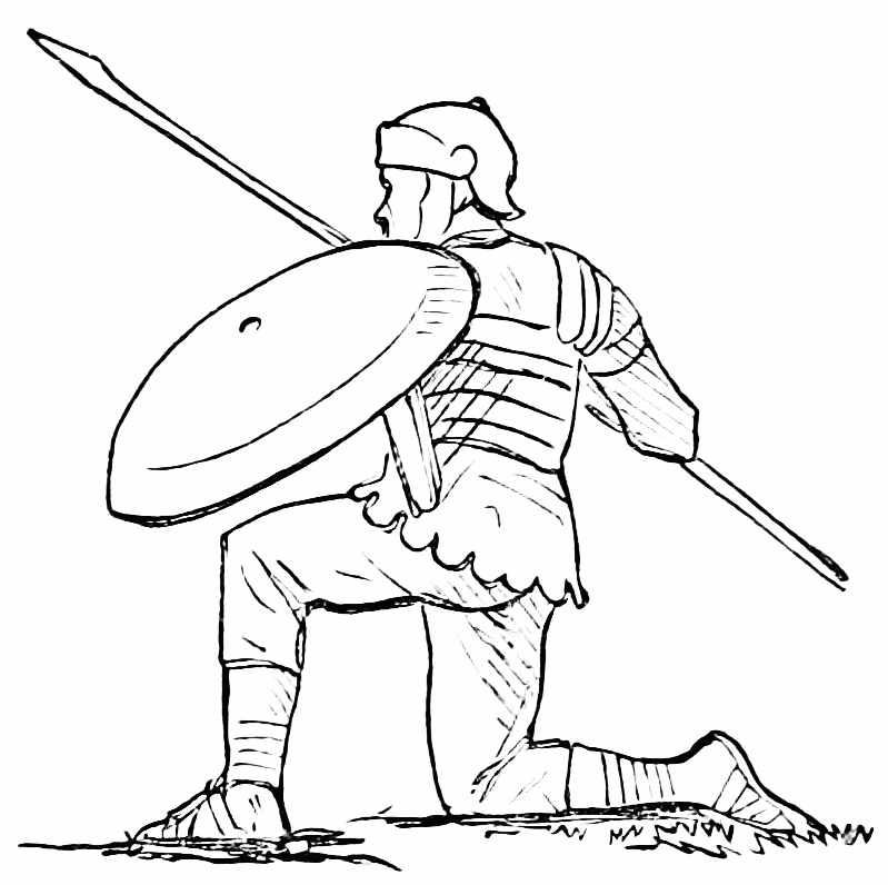 After a time it was found that this primitive helmet did not protect the face; so a large piece was added in front. This covered the face, but was soldered to the helmet and not movable. It is this immovability of the vizor which throws the whole helmet back when the face is uncovered, and it is this backward position which gives the peculiar character to the Greek helmet. We see it constantly in the statues of Minerva, and we have adopted it for our figure of Britannia.