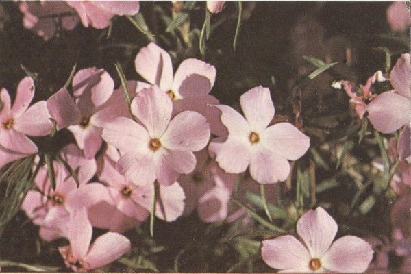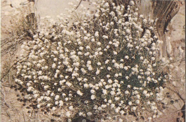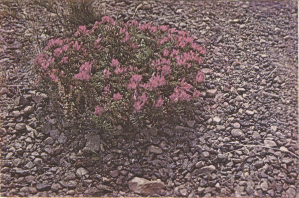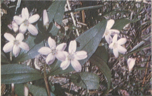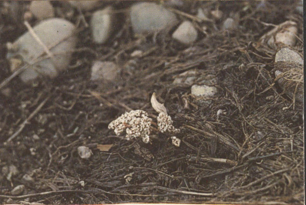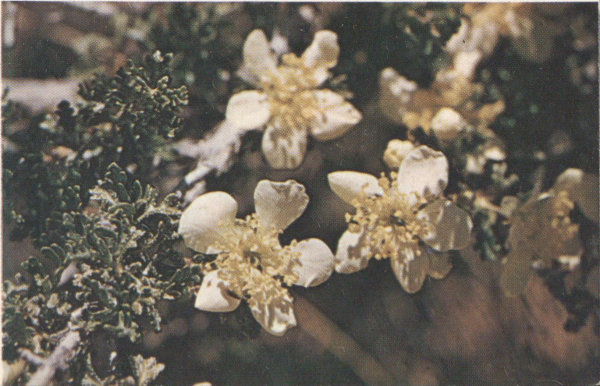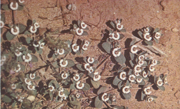 The flowers, a pinkish white, are found on short stems or spreading branches close to the ground. As the plants are rather small and not very showy, it takes careful searching to find them.