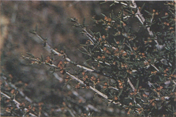 The plant is a relative of the Pines and Firs and is very able to withstand drouth. It is found fairly abundantly in the Sagebrush and Saltbush areas of the Upper Sonoran Zone.