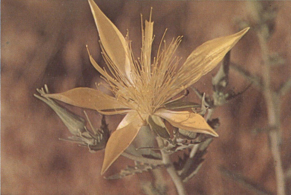 The name “Our Lord’s Candlestick” was given to this tall, conspicuous plant of the desert by the early Spanish Padres, who were the first white men to see this region of Southern Utah. During May and June the waxy-white flowers bloom on tall stalks and soon mature into rather large seed pods.