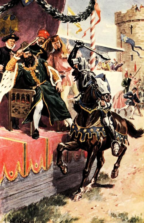 Skirting the moat, he gained the barbican, then, drawing in his horse, he looked, with an expression of mingled anger and surprise, upon the preparations of welcome.