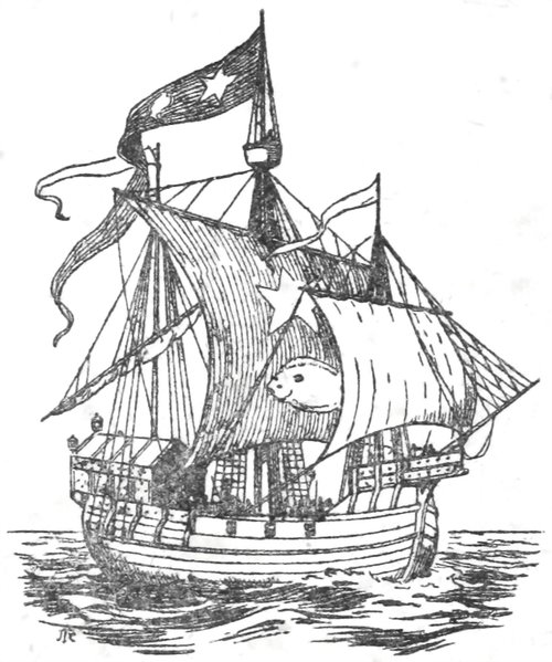 "The Grâce à Dieu lies off the Poles yonder," continued Wat, pointing towards the invisible sandbanks that encumbered the mouth of the harbour. "She hath come in betimes this morning, and even now is anchored beyond the bar."