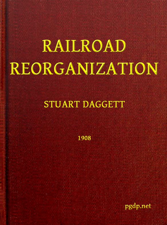 The Project Gutenberg EBook of Railroad Reorganization, by Stuart Daggett This eBook is for the use of anyone anywhere in the United States and most other parts of the world at no cost and with almost no restrictions whatsoever. You may copy it, give it away or re-use it under the terms of the Project Gutenberg License included with this eBook or online at www.gutenberg.org. If you are not located in the United States, you'll have to check the laws of the country where you are located before using this ebook. Title: Railroad Reorganization Author: Stuart Daggett Release Date: August 21, 2017 [EBook #55397] Language: English Character set encoding: UTF-8 *** START OF THIS PROJECT GUTENBERG EBOOK RAILROAD REORGANIZATION *** Produced by WebRover, MWS, Adrian Mastronardi, Charlie Howard, the Philatelic Digital Library Project at http://www.tpdlp.net and the Online Distributed Proofreading Team at http://www.pgdp.net (This file was produced from images generously made available by The Internet Archive/American Libraries.)