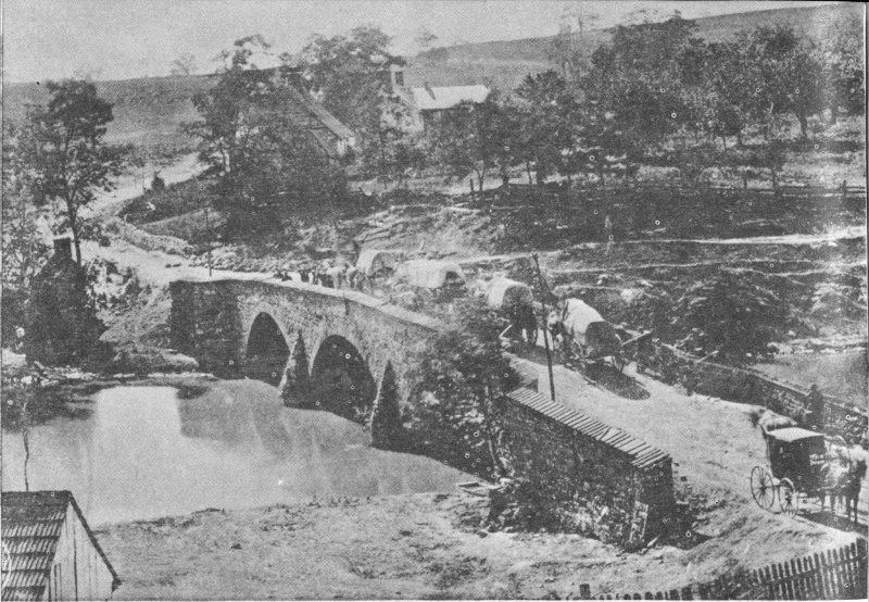 Crossings of swiftly flowing Antietam Creek were readily available. The road extending northwest from Keedysville went over the stream at the Upper Bridge, the road to Sharpsburg from Boonsboro over the Middle Bridge, and the road to Sharpsburg from Pleasant Valley over the Lower Bridge. The stream could be crossed, also, at Pry’s Mill Ford, a half mile south of the Upper Bridge, at Snavely’s Ford, nearly a mile south of the Lower Bridge, and at other unnamed fording places.