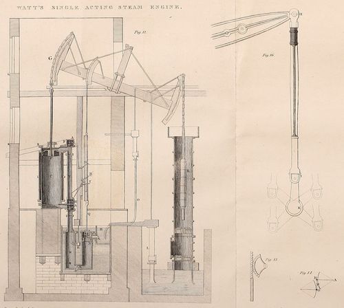 The Single-acting Engine unfit to impel Machinery. — Various Contrivances to adapt it to this Purpose. — Double-Cylinder. — Double-acting Cylinder. — Various modes of connecting the Piston with the Beam. — Rack and Sector. — Double Chain. — Parallel Motion. — Crank. — Sun and Planet Motion. — Fly Wheel. — Governor. 91