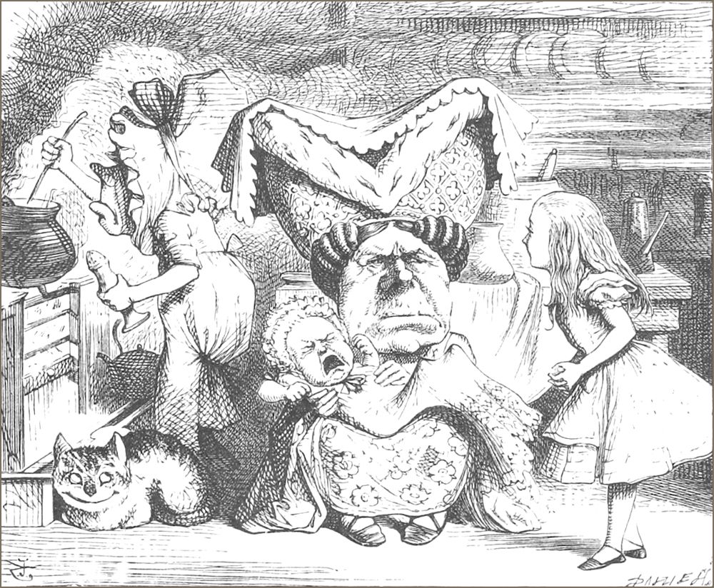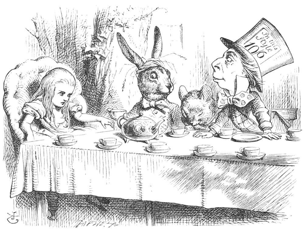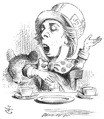 “Pardon,” demanda la Souris en fronçant le sourcil, mais fort poliment, “qu’avez-vous dit?”