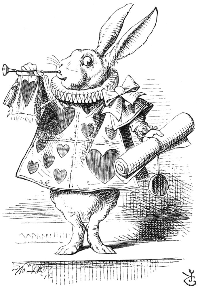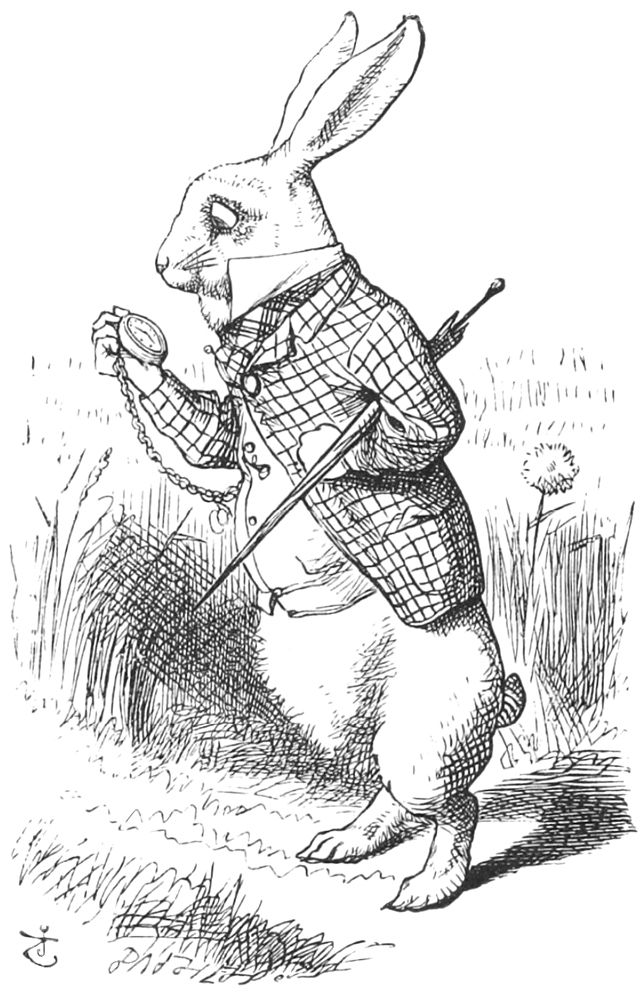 Elle s’était mise à réfléchir, (tant bien que mal, car la chaleur du jour l’endormait et la rendait lourde,) se demandant si le plaisir de faire une couronne de marguerites valait bien la peine de se lever et de cueillir les fleurs, quand tout à coup un lapin blanc aux yeux roses passa près d’elle.