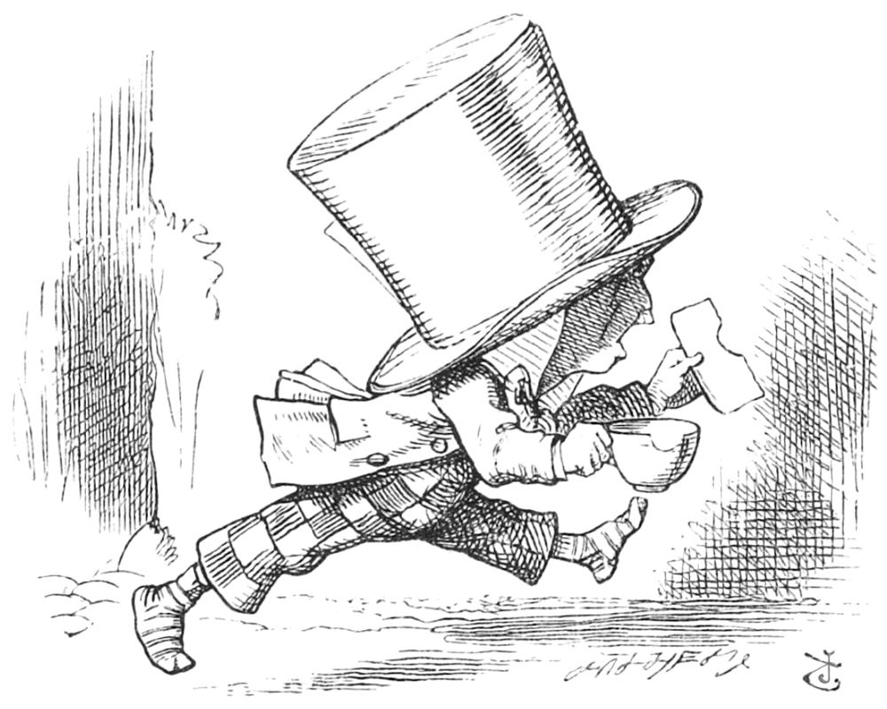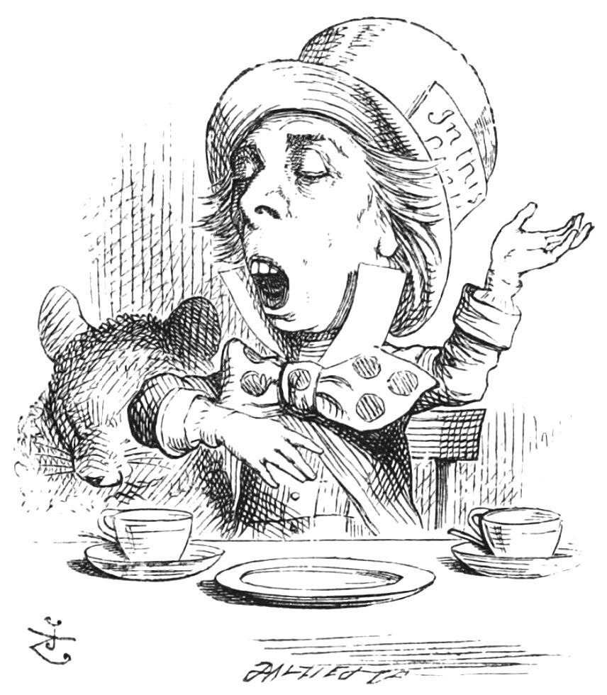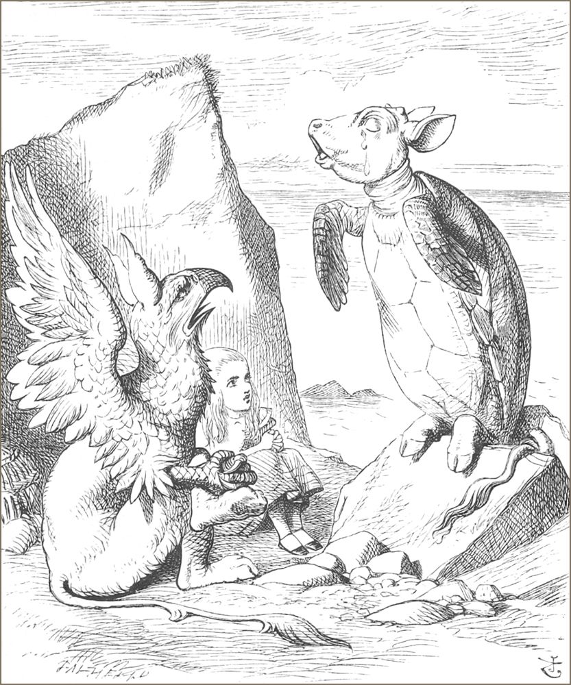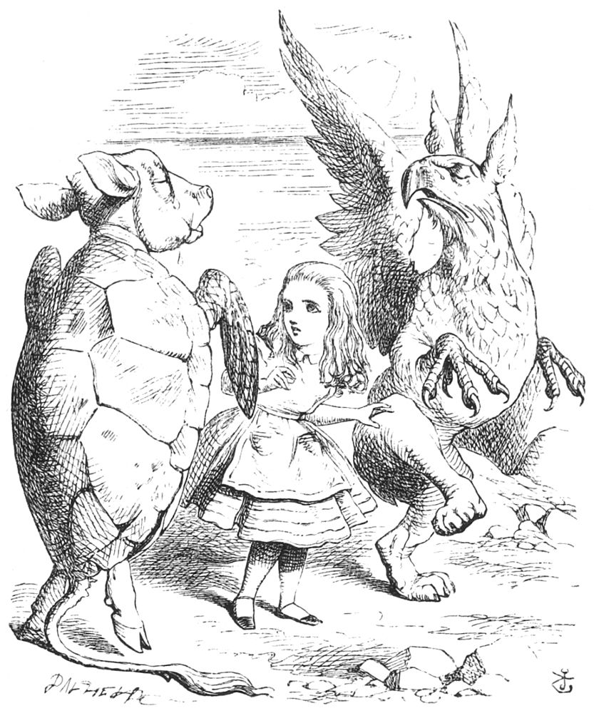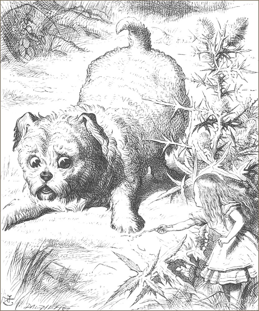 “Ah! je croyais,” dit la Souris. “Je continue. ‘Edwin et Morcar, comtes de Mercie et de Northumbrie, se déclarèrent en sa faveur, et Stigand, l’archevêque patriote de Cantorbery, trouva cela——’”