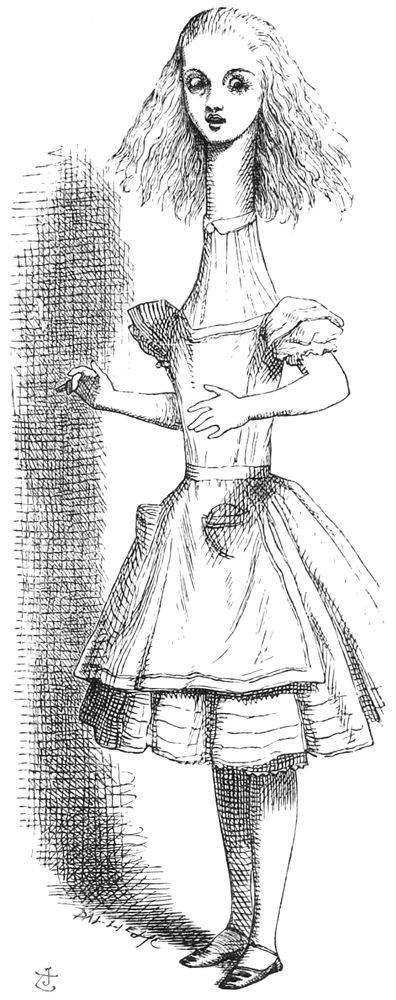 Au même instant, sa tête heurta contre le plafond de la salle: c’est qu’elle avait alors un peu 17 plus de neuf pieds de haut. Vite elle saisit la petite clef d’or et courut à la porte du jardin.