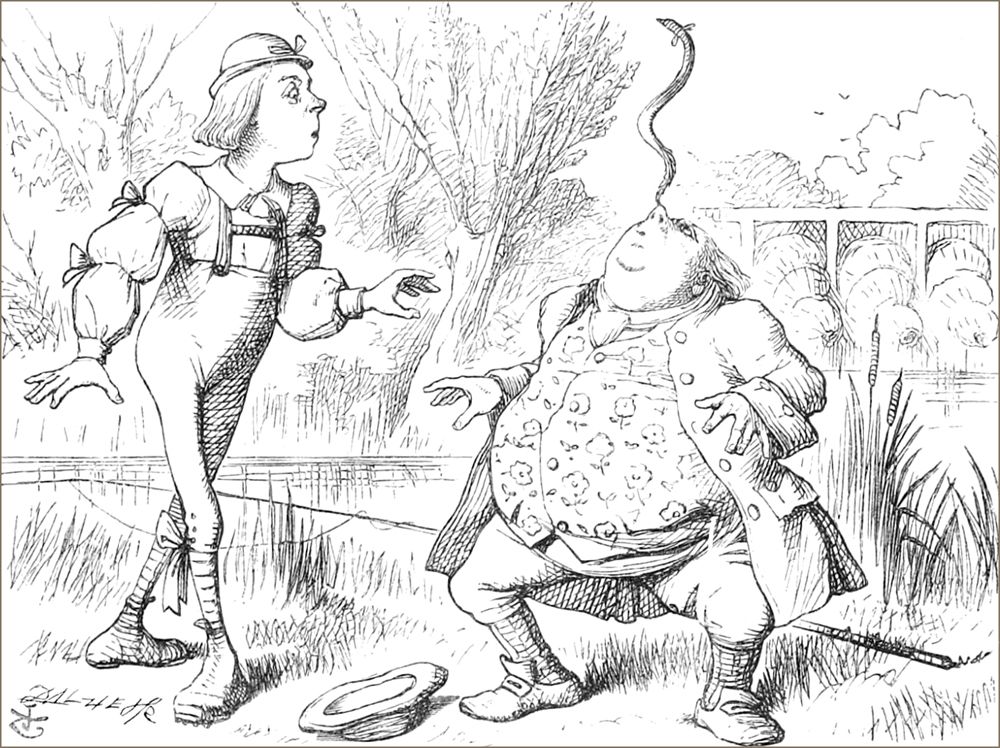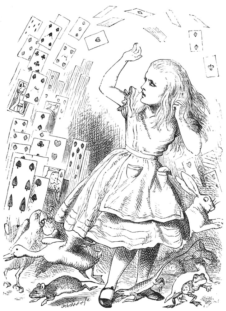 “Comment faire pour nous sécher?” ce fut la première question, cela va sans dire. Au bout de quelques instants, il sembla tout naturel à Alice 30 de causer familièrement avec ces animaux, comme si elle les connaissait depuis son berceau. Elle eut même une longue discussion avec le Lory, qui, à la fin, lui fit la mine et lui dit d’un air boudeur: “Je suis plus âgé que vous, et je dois par conséquent en savoir plus long.” Alice ne voulut pas accepter cette conclusion avant de savoir l’âge du Lory, et comme celui-ci refusa tout net de le lui dire, cela mit un terme au débat.