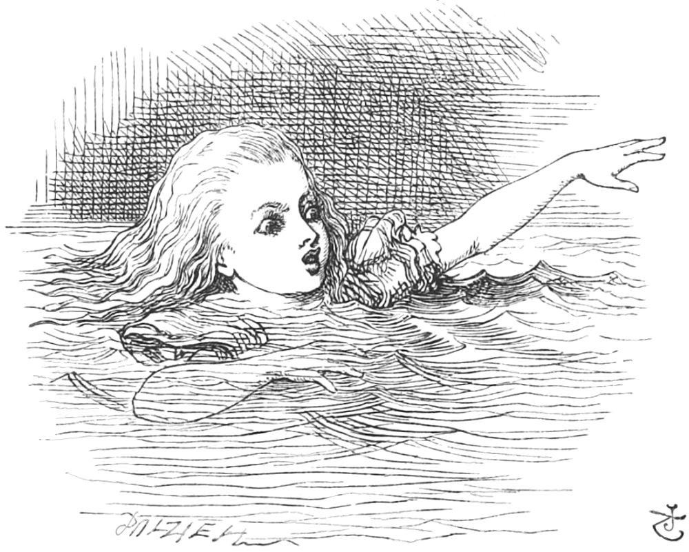 “Je voudrais bien n’avoir pas tant pleuré,” dit Alice tout en nageant de côté et d’autre pour tâcher de sortir de là. “Je vais en être punie sans doute, 24 en me noyant dans mes propres larmes. C’est cela qui sera drôle! Du reste, tout est drôle aujourd’hui.”