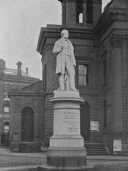 The third son of this young couple, Rowland, the future postal reformer, first saw the light in a house at Kidderminster wherein his father was born, which had already sheltered some generations of Hills, and whose garden was the scene of the potato [Pg 8] story. The child was weakly, and, being threatened with spinal trouble, passed much of his infancy in a recumbent position. But the fragile form held a dauntless little soul, and the almost abnormally large brain behind the too pallid forehead was a very active one. As he lay prone, playing with the toys his mother suspended to a cord stretched within easy reach above him; and, later, working out mental arithmetical problems, in which exercise he found delight, and to the weaving of alluring daydreams, he presently fell to longing for some career—what it should be he knew not—that should leave his country the better for his having lived in it. The thoughts of boys are often, the poet tells us, “long, long thoughts,” but it is not given to every one to see those daydreams realised. Though what is boy (or girl) worth who has not at times entertained healthily ambitious longings for a great future?